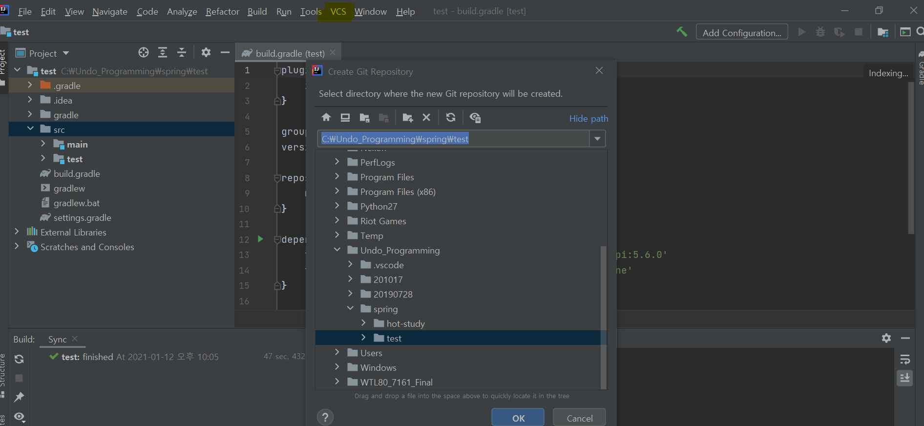 1. File>Settings 클릭하여 git 실행 파일 세팅 또는 잘 들어있는지 확인